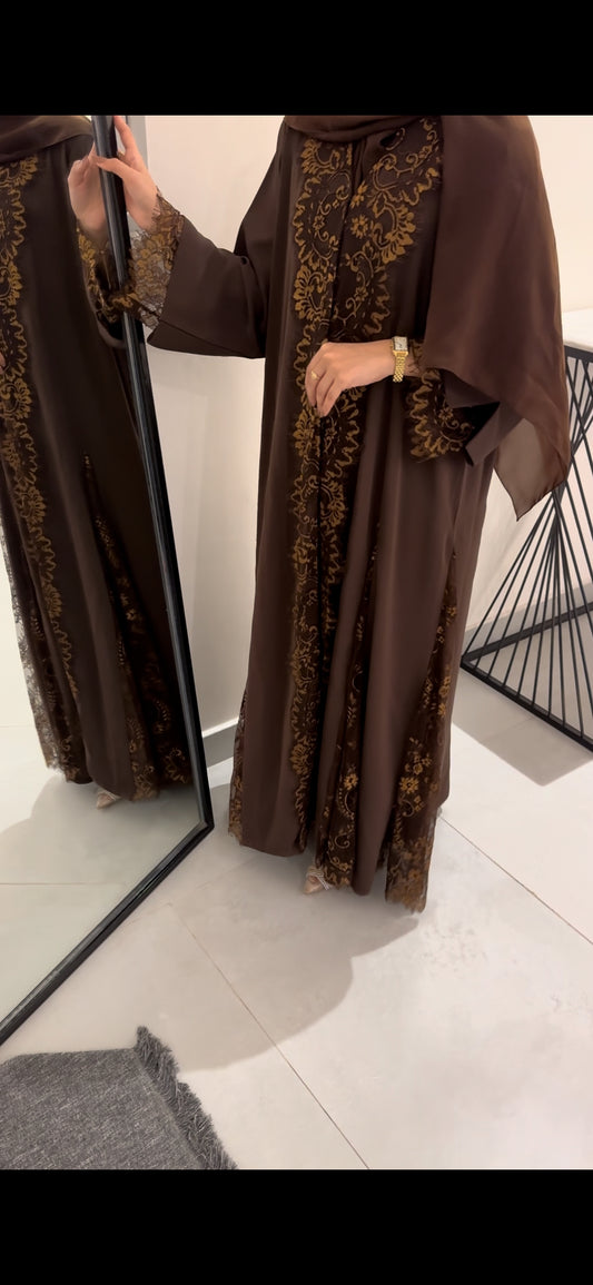 Luxury Brown Abaya in Nada Fabric with Dantel | UAE Abaya Shop