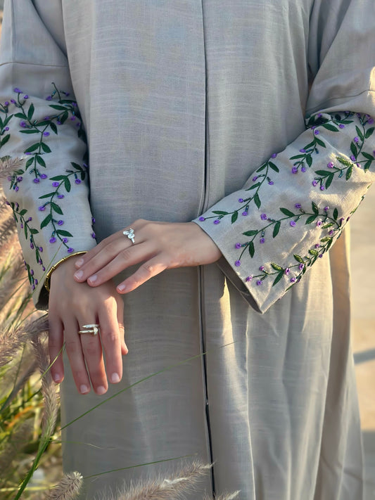 "Summer Wear Linen Abaya with Thread Handwork" Z117