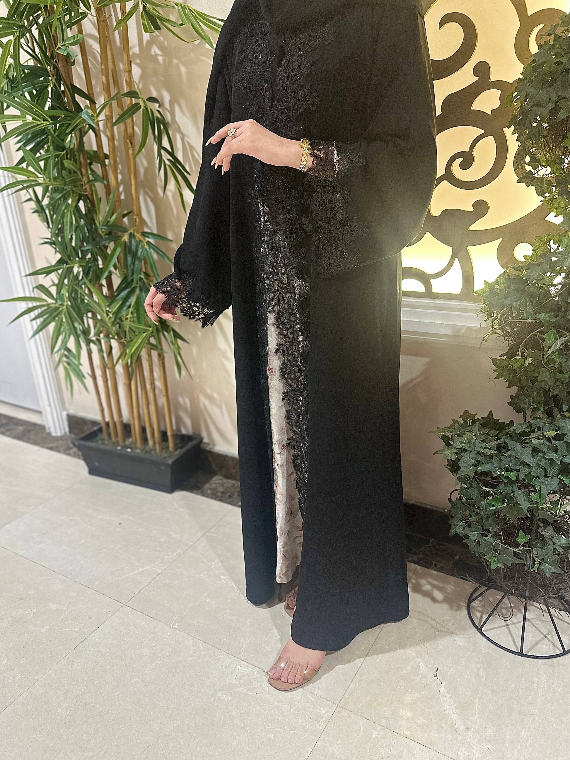 Introducing Abaya Lace - a new, modern take on a traditional garment. With its intricate lace and stunning stone work, this abaya is sure to make a statement. Elevate your modest fashion with this beautiful design that seamlessly blends style and tradition. Perfect for any occasion, this versatile piece is a must-have in every wardrobe.