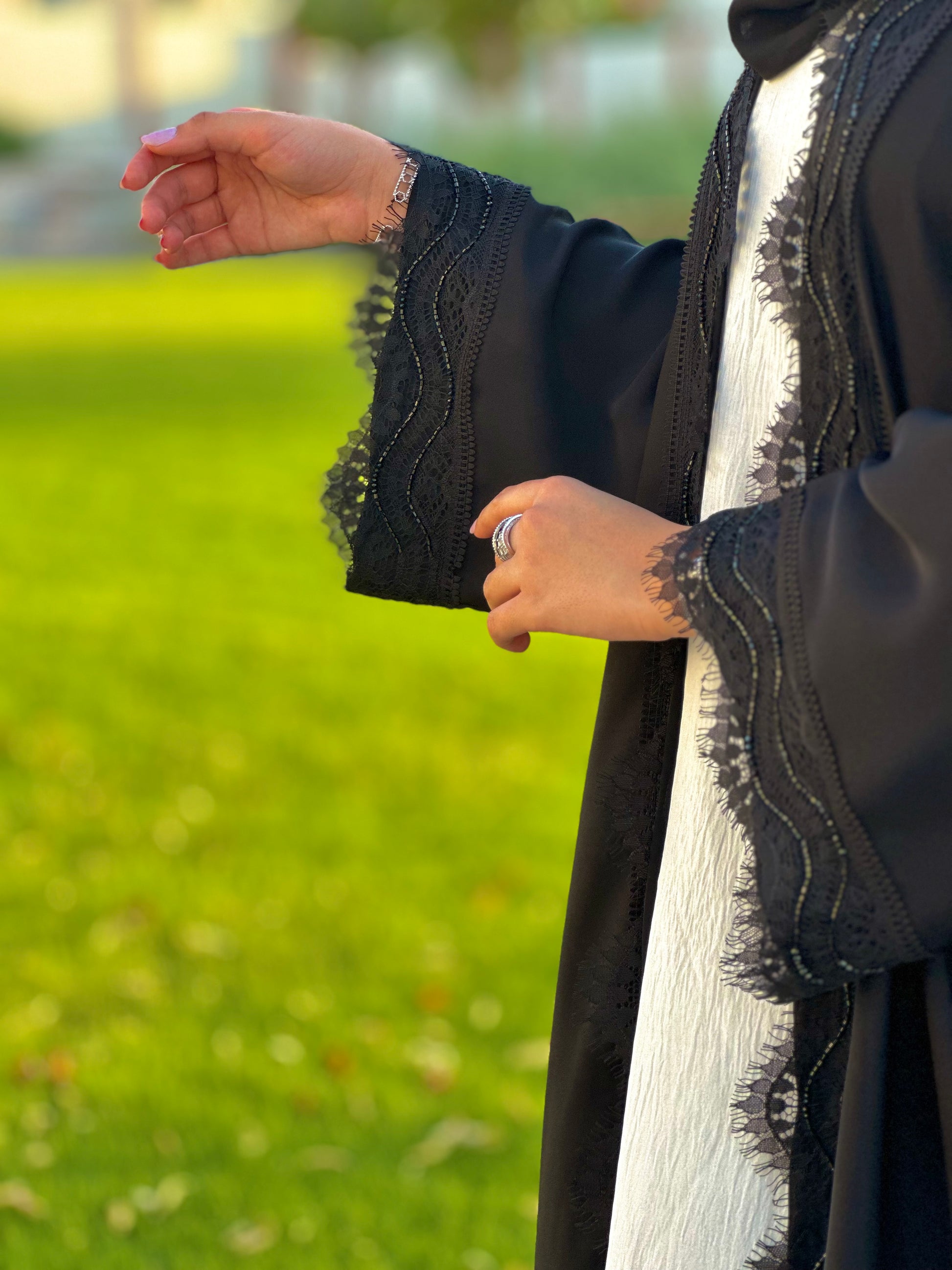 Upgrade your daily wear with our Abaya dantel design. This comfortable abaya features stylish lace borders, adding a touch of elegance to your outfit. Enjoy a confident and fashionable look with our versatile design.