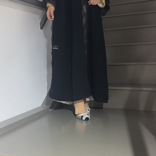 Indulge in luxury with our Abaya, perfect for daily wear. Adorned with beautiful lace and exquisite black crystals, this piece is a masterpiece that will elevate any outfit. Step out in style and elegance with our Abaya, a true symbol of sophistication.