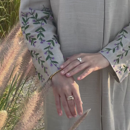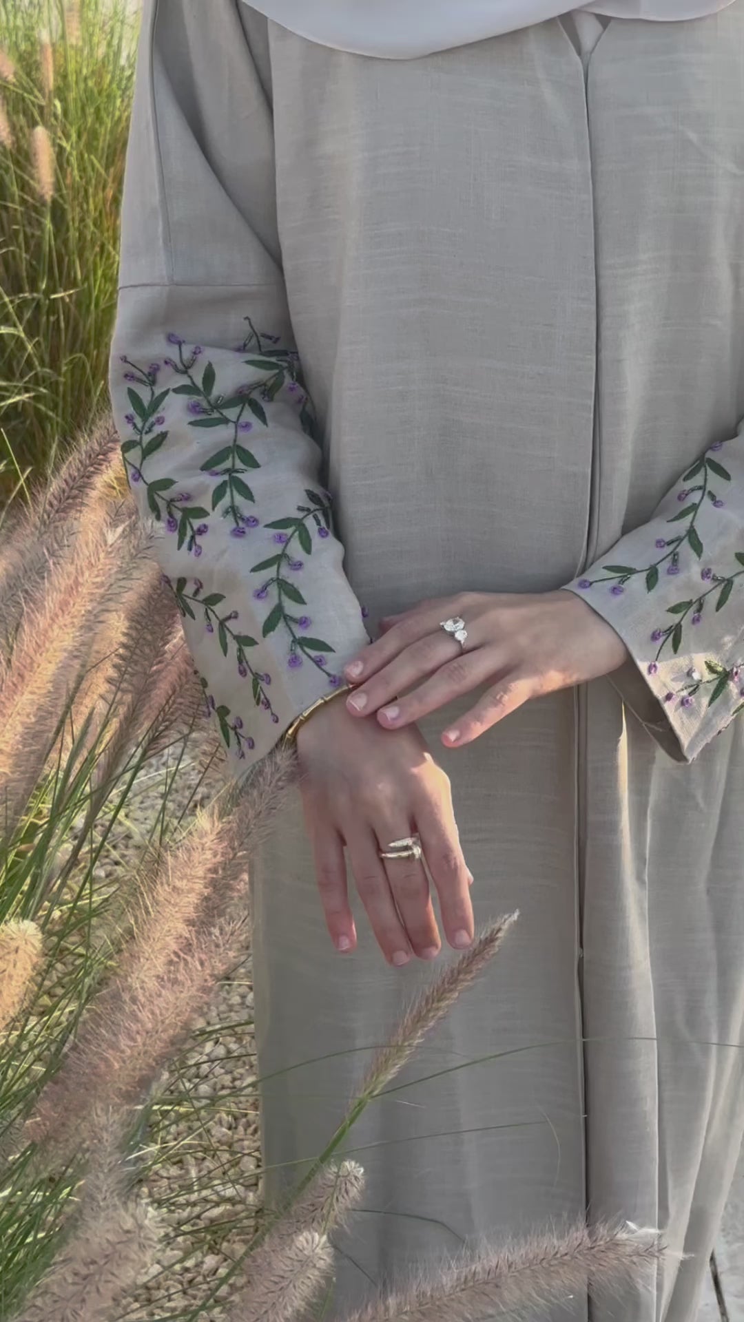 "Summer Wear Linen Abaya with Thread Handwork" Z117