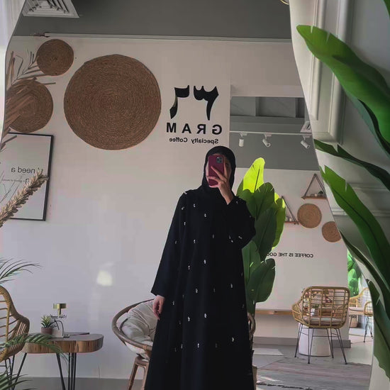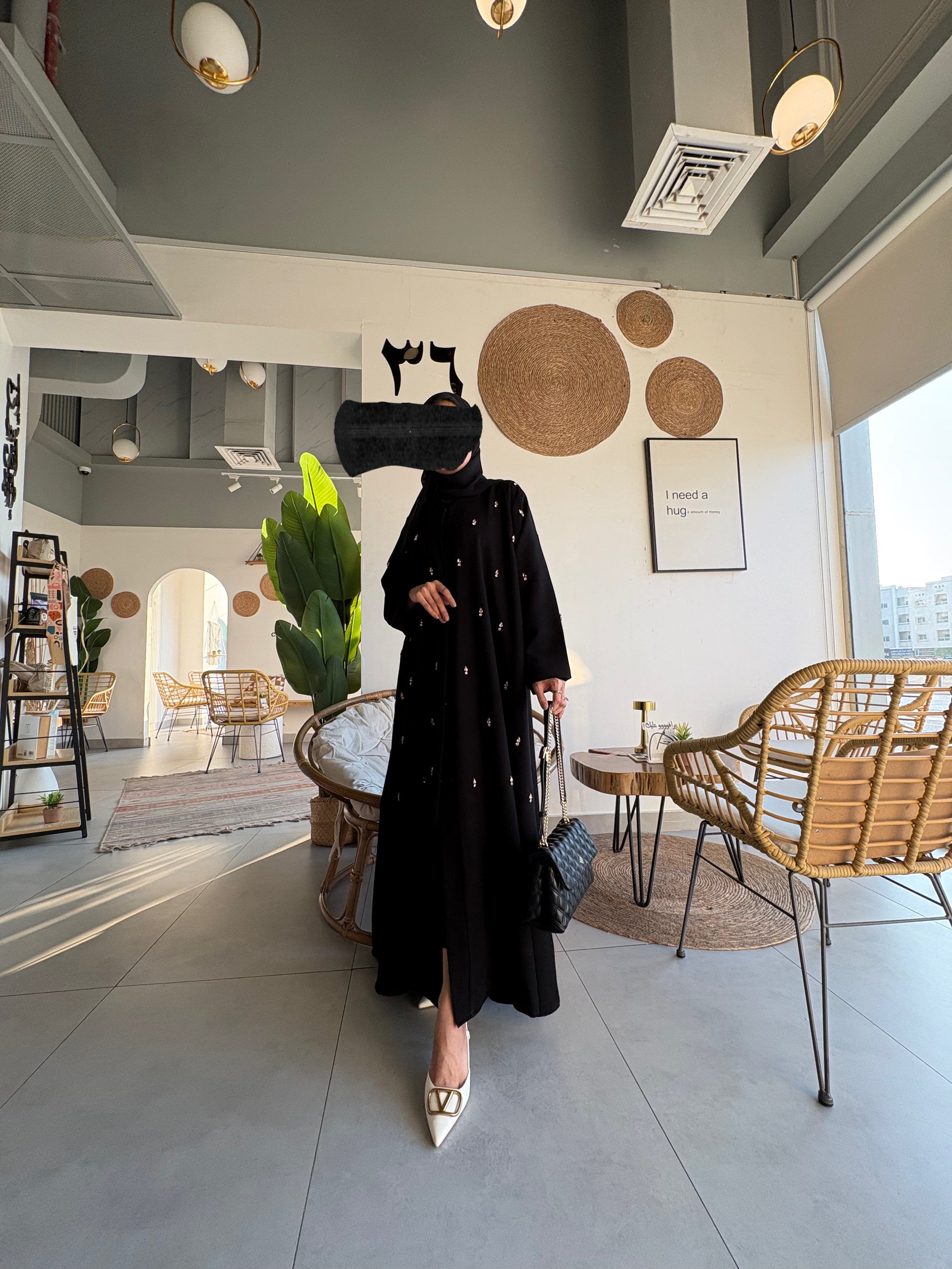 Introducing our Elegant Abaya, a stunning piece adorned with delicate crystal work. This classy abaya is perfect for any occasion, elevating your style and adding a touch of elegance. Expertly crafted with attention to detail, it is truly a must-have in every wardrobe.