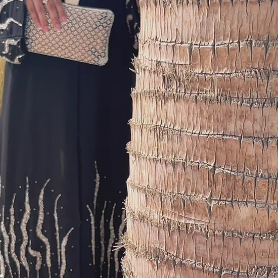 Experience ultimate sophistication with The Statement Abaya. Hand crafted work that showcases the beauty and elegance of this statement abaya. Be the center of attention while exuding confidence in this stunning piece. Perfect for any occasion, elevate your style with this one of a kind abaya.