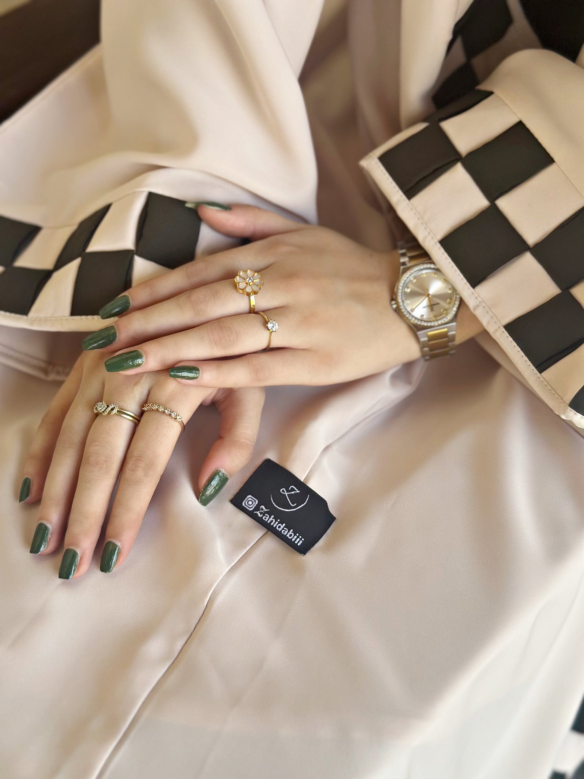 Color : Biege & army green checked