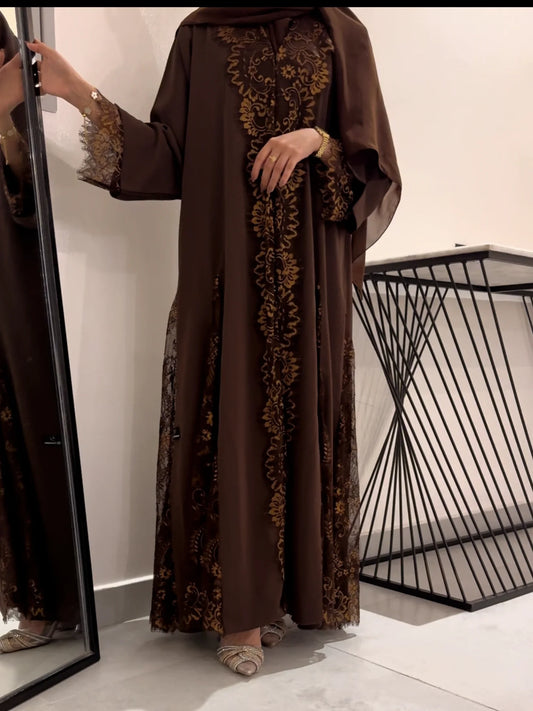 Luxury Brown Abaya in Nada Fabric with Dantel | UAE Abaya Shop