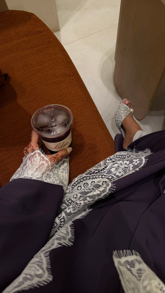Premium Purple 💜 Lace Panel Zahidabi Abaya – Stylish Dubai Modest Wear